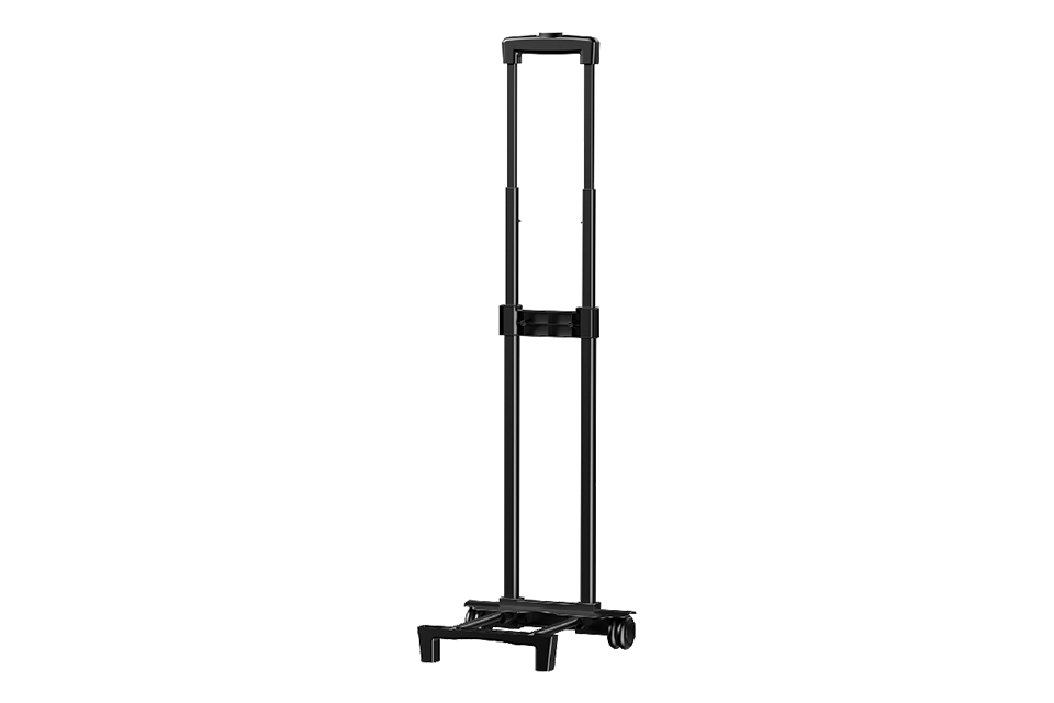 金屬拉桿支架,可通過把手上的控制按鈕進行伸縮,調節高度。